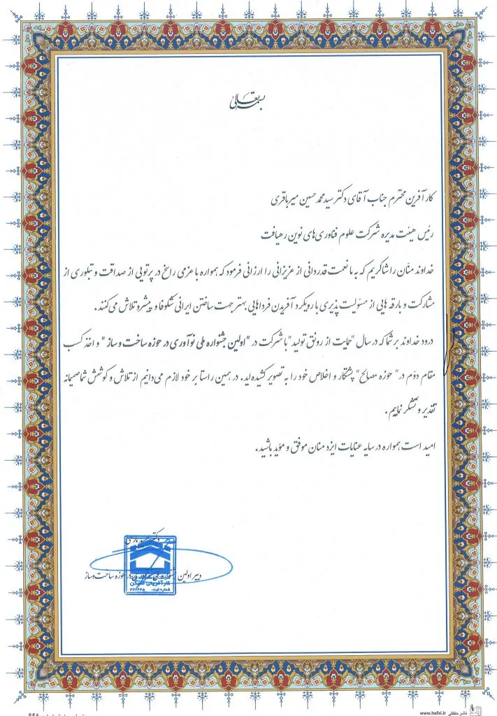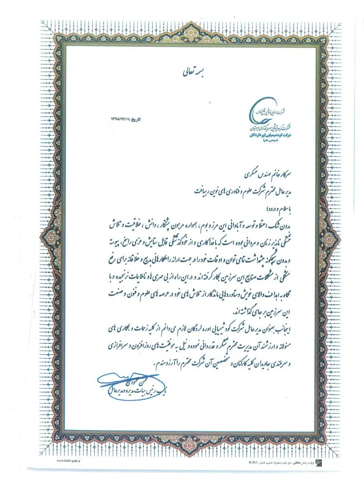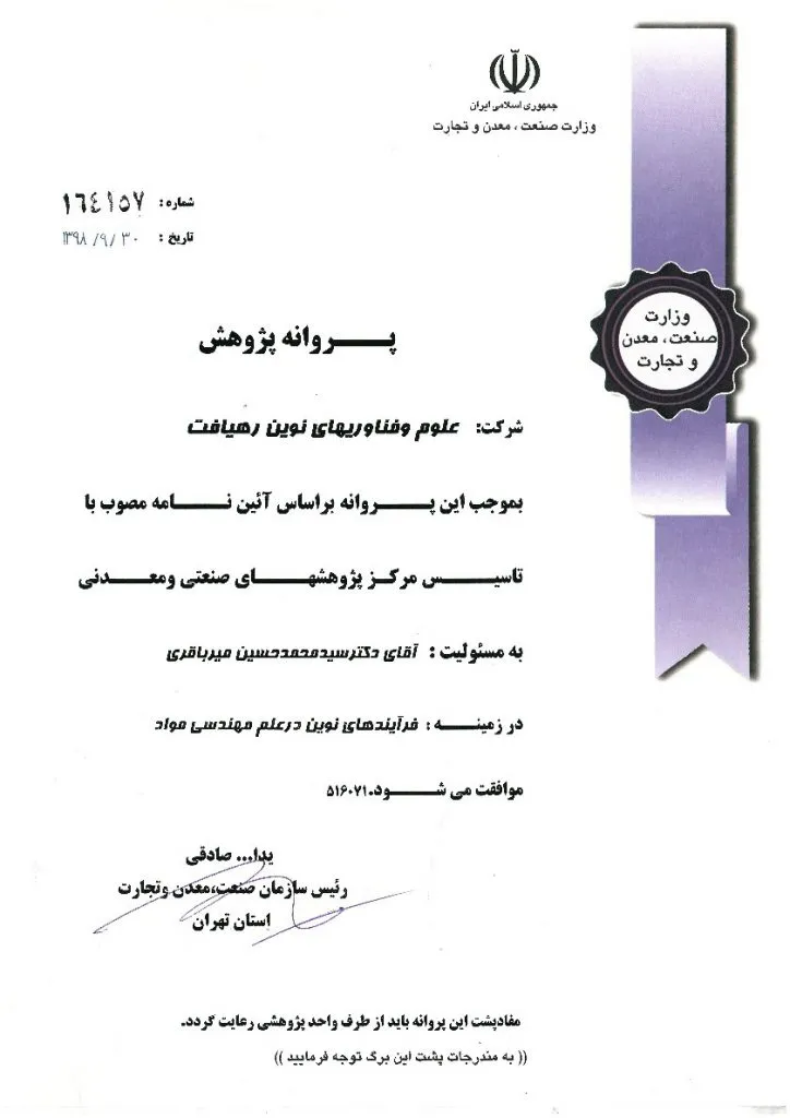 یکی از پروژه های مهم این شرکت، دستیابی به دانش فنی تولید ماده پیشرفته فوم فلزی است. موسسین این شرکت پس از سال ها کار پژوهشی و مطالعاتی گسترده، در قالب اجرای چندین پروژه دانشگاهی و صنعتی، موفق به تولید آزمایشگاهی فوم آلومینیومی سلول بسته و فوم های سلول باز مس و نیکل شده اند که در طی چند سال گذشته، تولید نیمه صنعتی این محصولات با طراحی و ساخت واحد پایلوت، عملیاتی شده است.